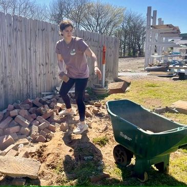 Our pollinator bed will be made where a massive pile of bricks sits. We have worked for quite a while clearing up this spot. It's always nice to have a little help!