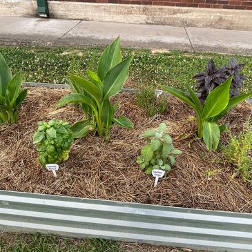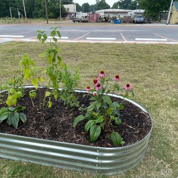 Our extension office moved into the old train depot building in the historic district of Covington. Any landscaping had to be approved by the city. In addition to filling the beds in the front of the building, three raised beds have been added. One raised bed will contain native plants, one bed will be maintained by the Master Gardener Interns, and the other bed currently holds herbs. There is a shade bed in the back of the building, along with a small bed containing Canna. A pollinator bed is planned for the Spring of 2025. Eventually there will be a woodland bed and a fragrance garden in the back of the building also.